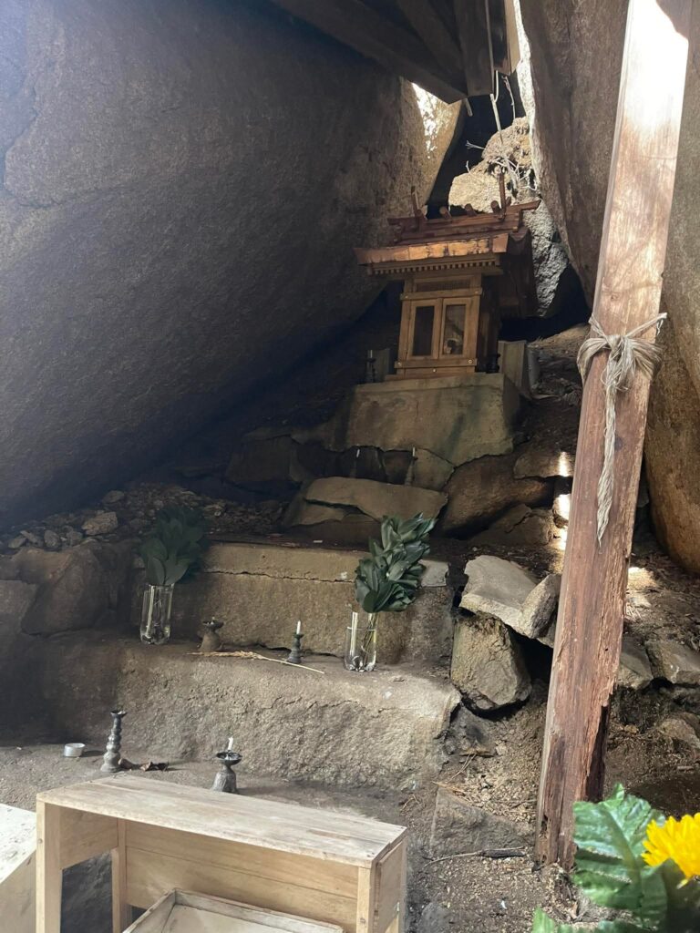 御神体の岩にさわって